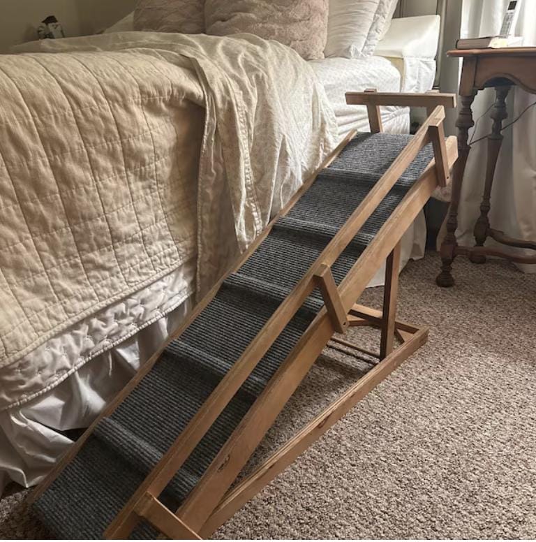 My ramps are the perfect solution for helping aging or arthritic pets get up onto beds, couches, RVs, or any other hard-to-reach spots. Built from sanded hardwood, these ramps are lightweight, sturdy, and easy to move and handle—designed for safety, comfort, and convenience.