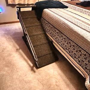 My ramps are the perfect solution for helping aging or arthritic pets get up onto beds, couches, RVs, or any other hard-to-reach spots. Built from sanded hardwood, these ramps are lightweight, sturdy, and easy to move and handle—a safe and reliable choice for your furry friend.